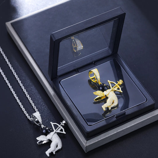 Ange Glacé Plaqué Or Blanc avec de grandes ailes