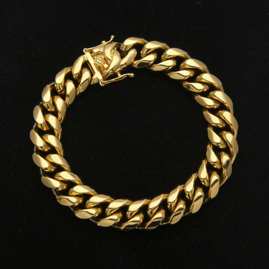 Bracelet Cubain Iced-Lock Plaqué Or 12mm