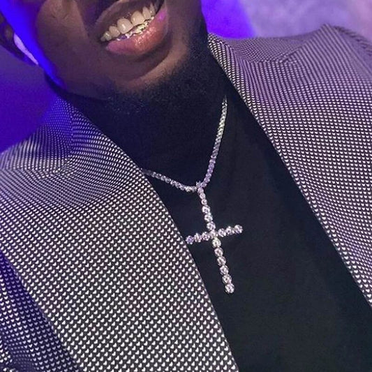 Pendentif croix de tennis glacé (argent 925)